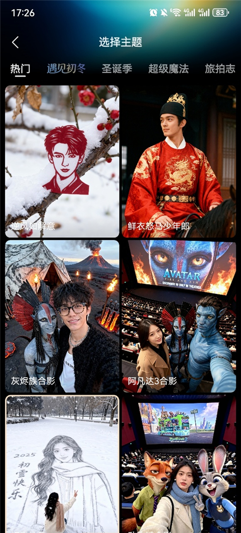 3、上传你需要制作的图片,当然也可以切换其它主题进行制作;