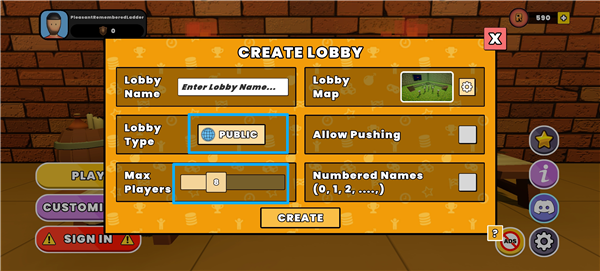 4、然后勾选房间是否私密,设置最大游玩人数,点击【CREAT】创建。