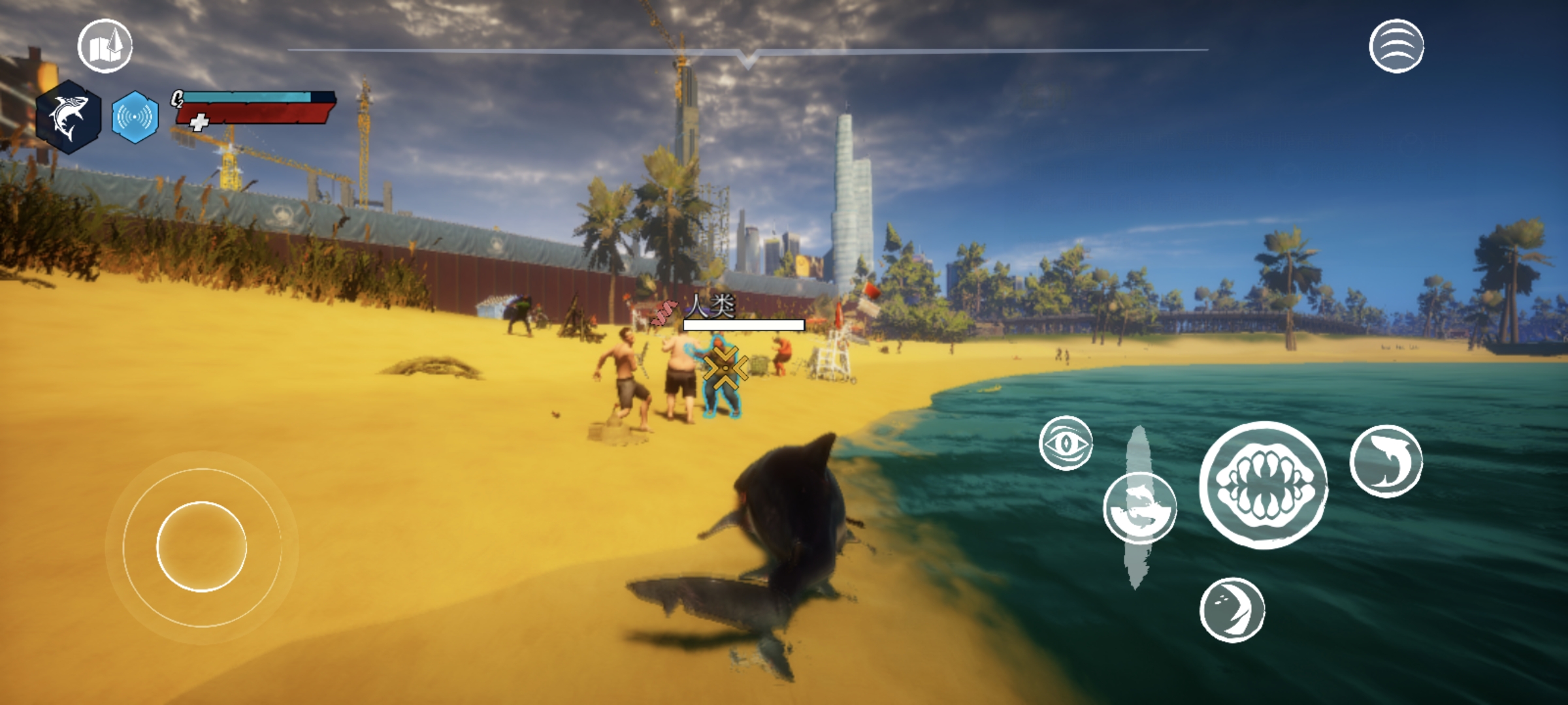 3、通过摇杆即可控制食人鲨的移动方向,不过感觉移动端的适配优化不是很好,操作不是很丝滑,有些生硬。