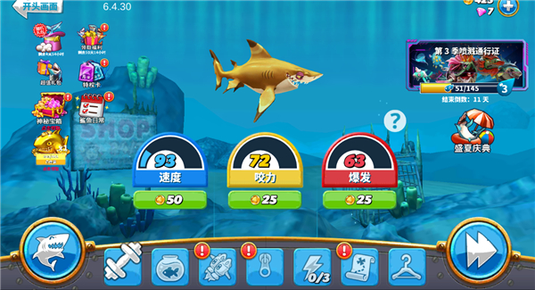 在游戏中完成各种任务,这将为您提供额外的奖励和解锁新鲨鱼的机会。