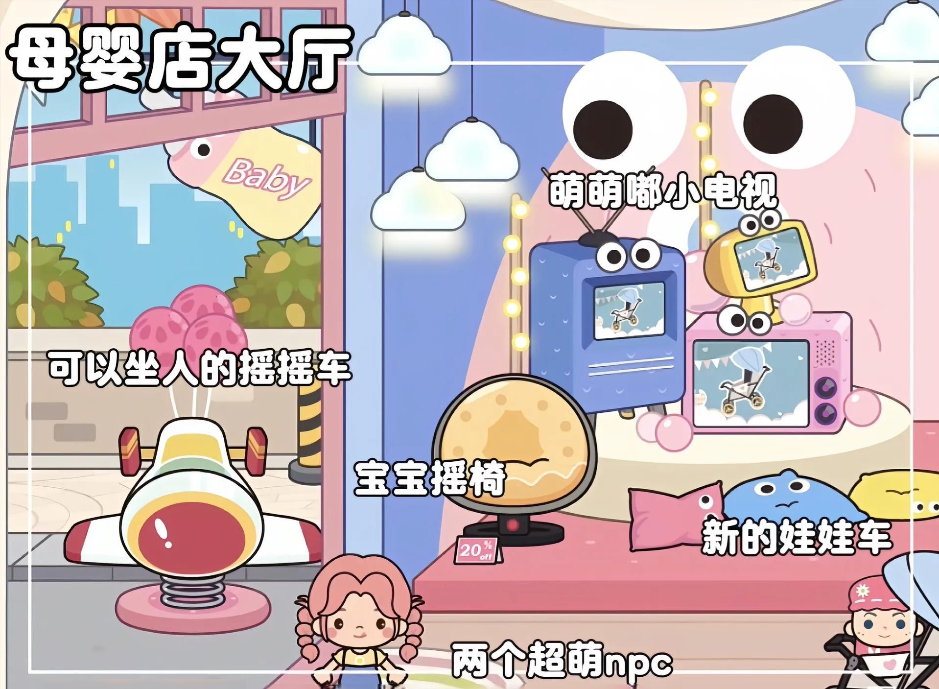 米加小镇世界最近推出了一个全新的母婴店地图场景,这个版本里新增了好多母婴用品和儿童玩具,比如奶粉、婴儿车、摇篮床等等。店里还有收银台和给宝宝洗澡的房间,可以体验各种带娃的乐趣。穿搭方面也更新了一些好看的童装和孕妇装,还新增了宝宝的新发型和书包。除此之外,游戏优化了一个“丝滑穿梭”的功能,让角色在家具之间移动更流畅。
