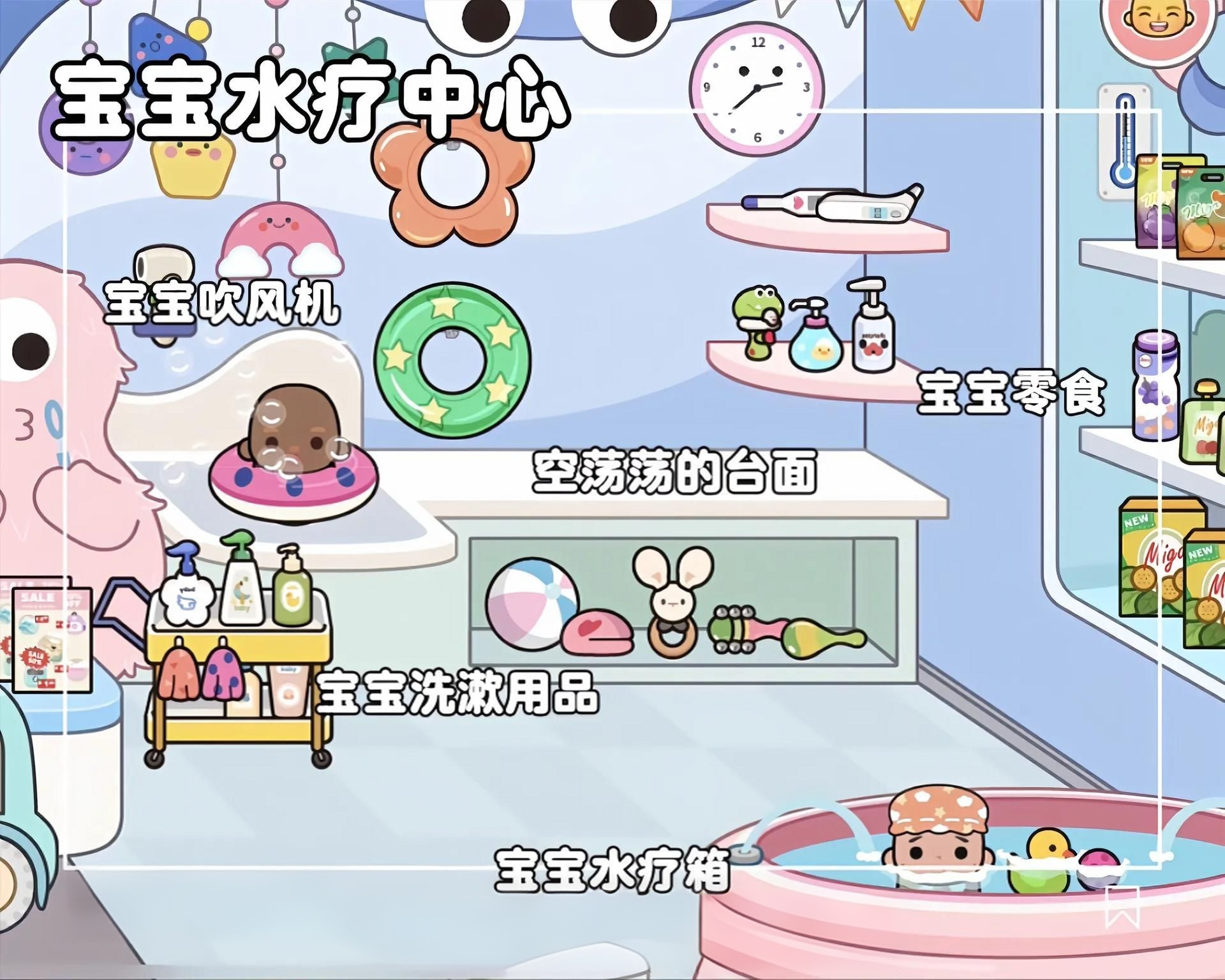 7、最后展示的是宝宝水疗中心,在这里可以扮演给婴儿沐浴洗澡的剧情,可以互动的道具也是非常的多