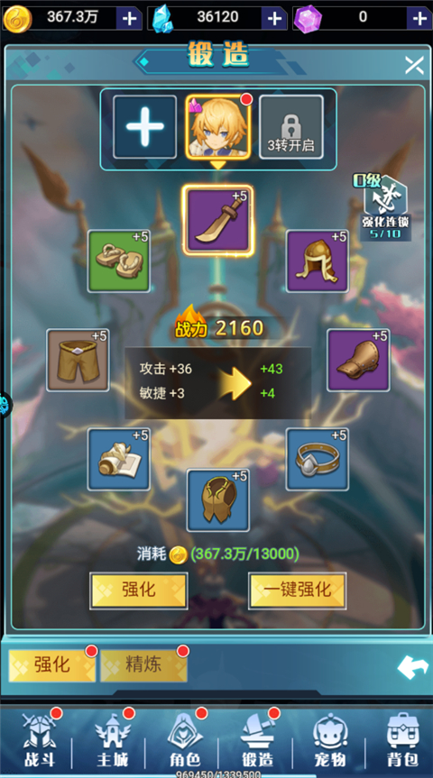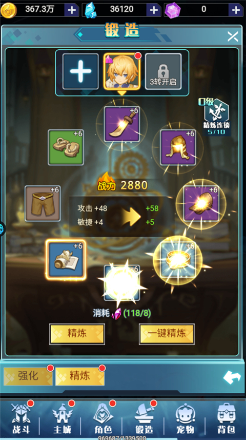 7、装备可以在锻造中进行升级