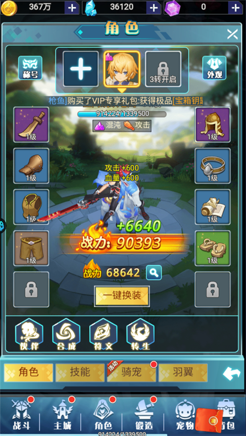 5、挑战boss或者完成关卡可以获得装备资源