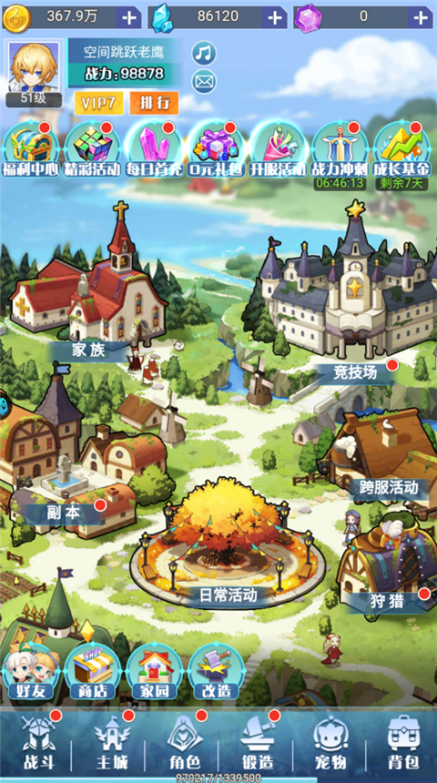 提供海量关卡、任务,玩家开始主要以完成任务为主来获得经验装备,随着玩家有一点的实力还可以解锁竞技场、跨服活动、狩猎、家园玩法哦!
