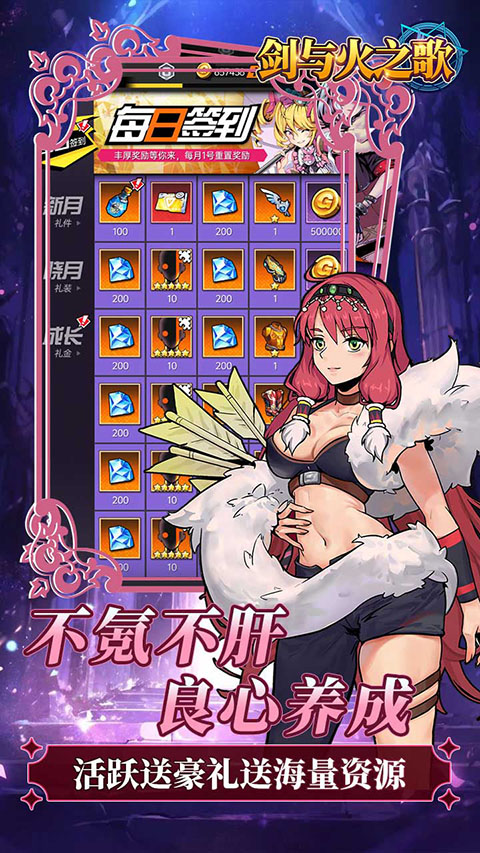 剑与火之歌0.05折手游是一款二次元风格的回合制策略游戏,同时也是一款0.05折福利版本,玩家上线即可免费领取钻石、VIP7特权、300万金币、绑定钻石,不需要完成任务。