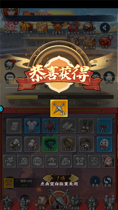 除了开箱,游戏里还有任务、秘境、组织、决斗场等多种玩法,完成任务还能解锁更多资源和奖励。每天签到就能领红色异兽,五天送传说忍者,七天送传奇忍者,简直不要太爽!通过升级木桩需要资源的话,可以挑战主线关卡获取。新人玩家一定要记得每天登录,利用GM特权领取海量资源。