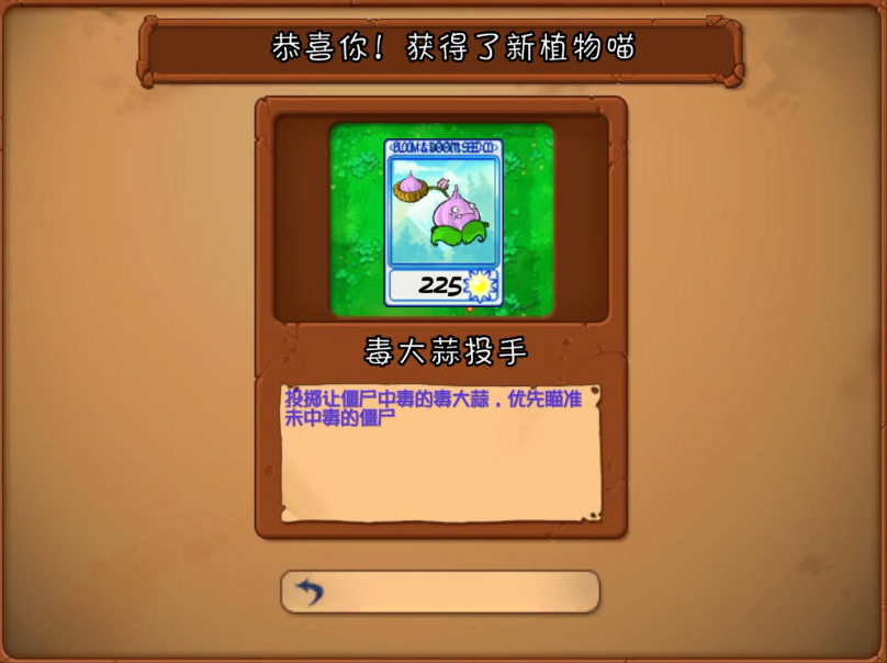 4、成功通关关卡就能获得一张随机的植物卡牌,可以在之后的关卡内使用。部分重要的植物会在特定的关卡赠送,玩困难模式不会提高获得高等卡的概率。