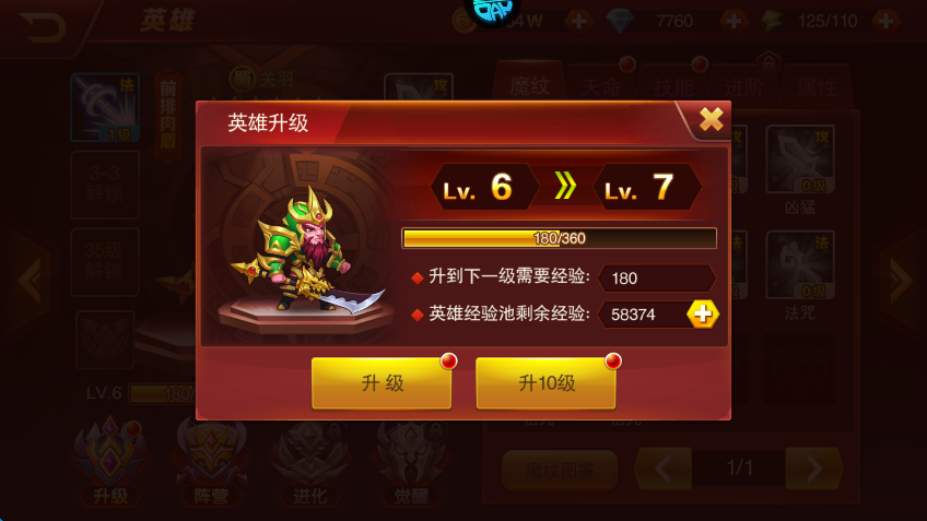 5、玩家还可以通过消耗材料使得武将进阶来提升武将实力。