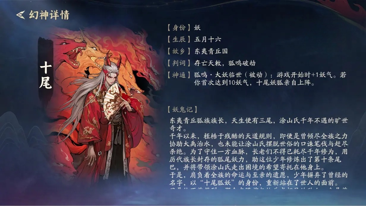 实每一个神通会直接决定你在游戏中部从构筑的方向。幻神除了主动、被动和战场技能之外,神通也可以分不同的类型,势力专精型、经济运营型、战力强化型等等。如:势力专精型,部分幻神神通将绑定特定势力,形成专属联动。就好比十尾的技能【狐鸣·大妖临世】当使君积攒够妖界独有的“妖气”资源,十尾直接撸起袖子下场开打。