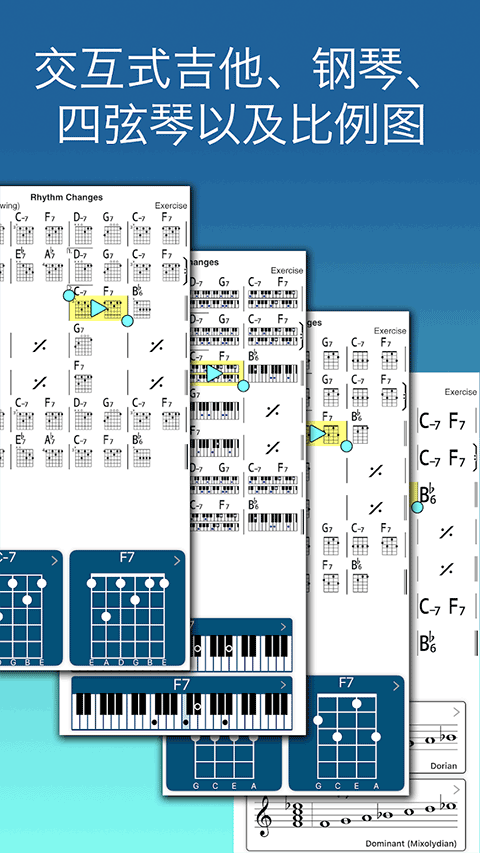 针对每个和弦实时显示建议的练习音阶,帮助乐手提升即兴演奏能力。