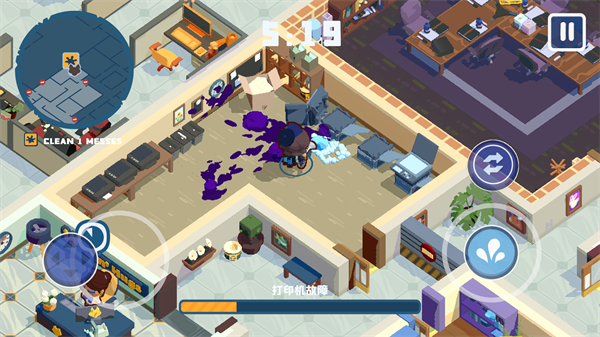 《狼人清洁工》是一款轻松有趣的潜行喜剧游戏,玩家扮演小狼清理工,在办公室里清理杂物的同时还得对抗自己的狼人本能。游戏操作简单,滑动屏幕就能完成所有动作,适合休闲娱乐。游戏中有丰富的NPC互动和隐藏路线设计,增加了探索的乐趣。汉化版更是方便了许多,不用再被英文困扰。
