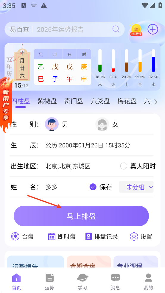 易百查app是一款八字排盘软件,能为用户提供多种专业的排盘工具,包括了四柱八字排盘、紫微斗数排盘、奇门遁甲排盘、六爻排盘、梅花易数排盘、六壬排盘等多种工具,用户也无需担心自己不会使用,里面有着详细的教程帮你,还有大量的易学文化知识可以学习。