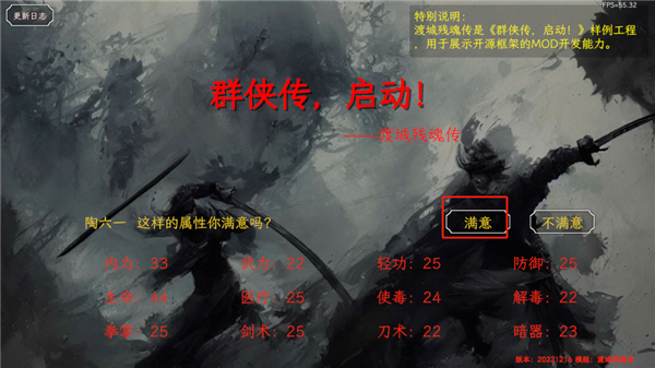 群侠传启动手机版是一个基于开放源代码制作的武侠rpg游戏,旨在致敬经典游戏《金庸群侠传》,里面包含了包含样例游戏《渡城残魂传》、《无限肉鸽武侠》,并玩家可以可自由安装MOD。在本作中,玩家可以体验验样例工程《渡城残魂转》,你将会扮演灵魂穿越附身于小乞丐的莫桥山庄掌门人“莫穿林”,通过各种主线剧情以及自己的调查,最终通关并解开自己死亡之谜,以及掩盖在该谜底下的阴谋。