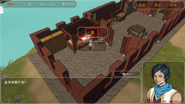 1、在自己家交互自己的尸体把自己埋了,发现自己尸体脖子后都个可疑的血点,点墓碑点否不掘自己坟,增加资质20(一直点一直加不知道有没有效果)获得一枚钥匙把屋里宝箱打开获得自己的独门武功