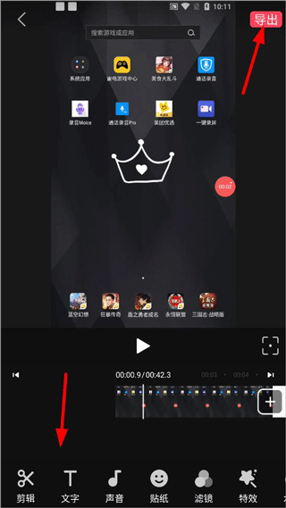 3、打开视频,点击下方的剪辑工具,剪辑好之后,点击右上角导出即可。