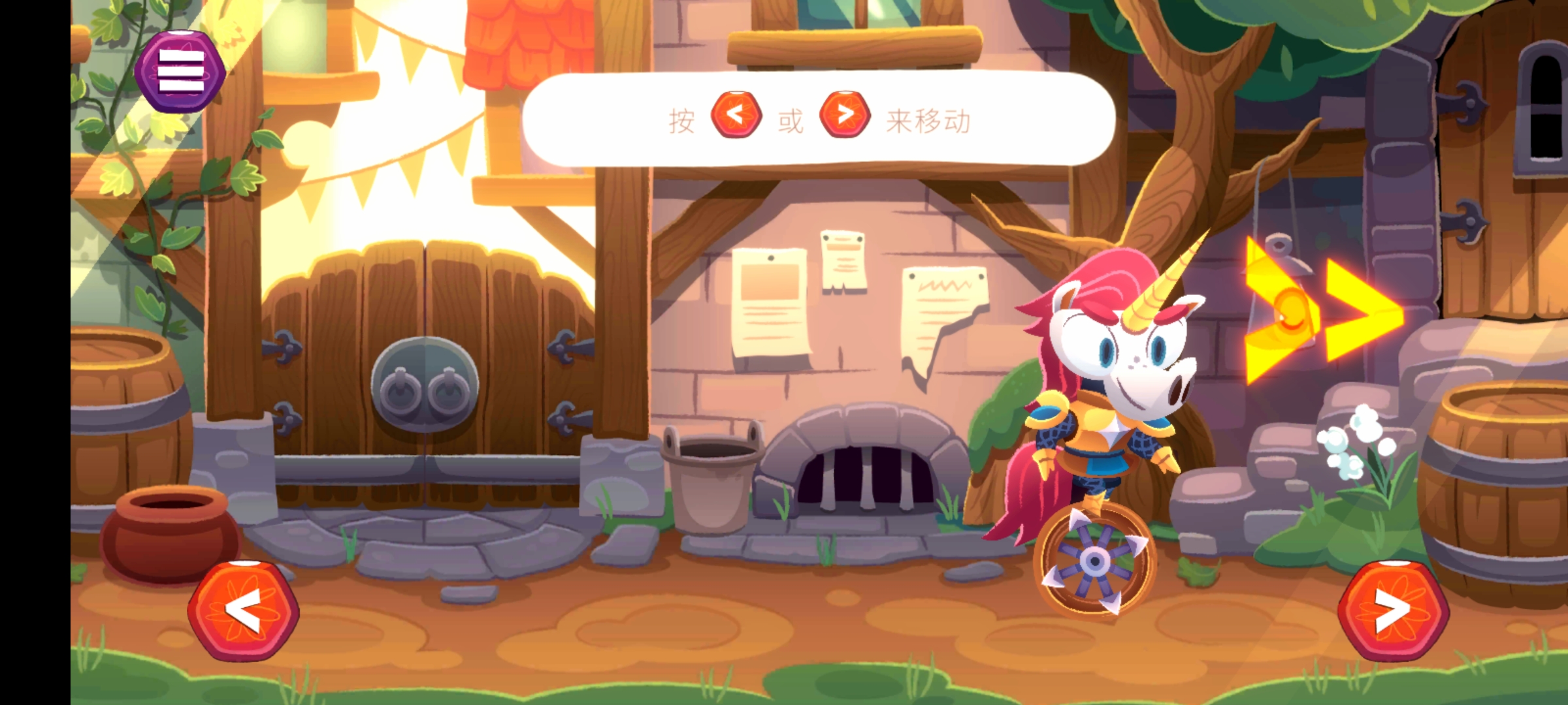 1、进入独轮车上的独角兽游戏后,点击屏幕开始