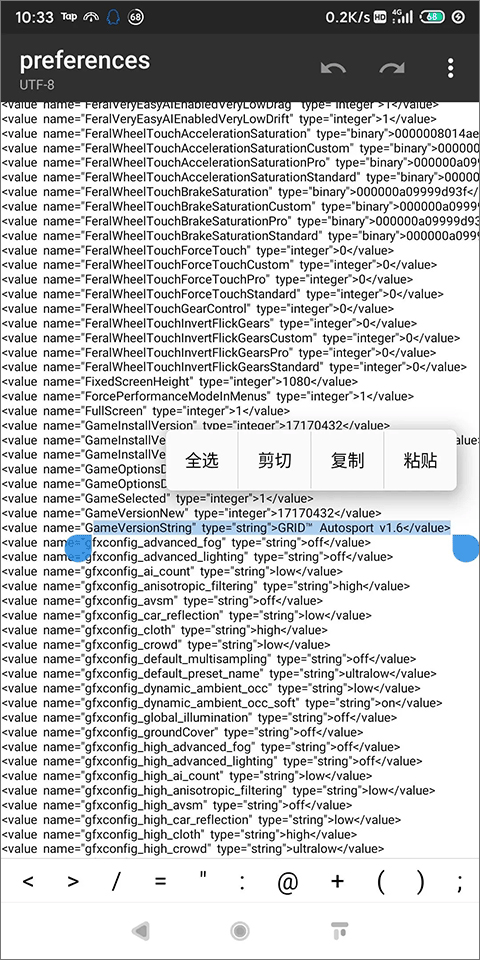 1、首先下载安装MT管理器, 不要ROOT都可以改,找到这个路径:/Android/data/com.feralinteractive.gridas/files/feral_app_support/ 里的preferences文件。