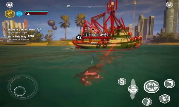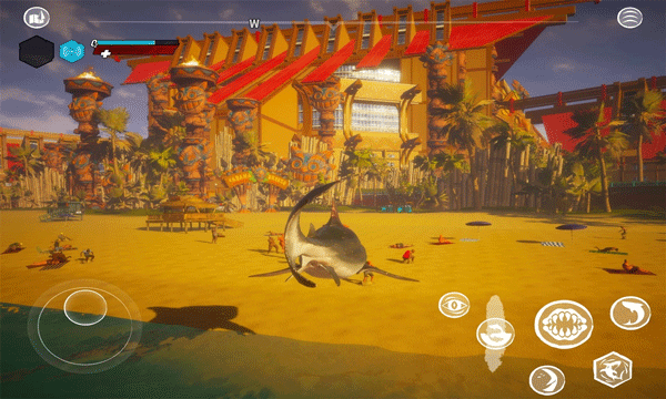游戏中有三种进化形态:暗影、骨质和生物电,每种形态都有不同的特点和能力提升。探索7个大区域,包括海湾、海滩、工业码头等,体验昼夜循环带来的不同挑战。游戏还支持自定义鲨鱼的属性和战斗风格,让每次战斗都充满策略性。