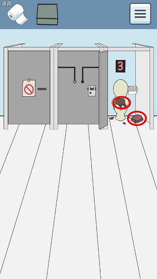2、打开第三个厕所门,拾取里面如下图所示的东西;