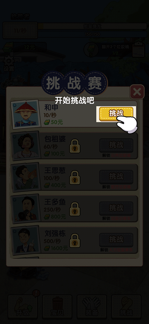 3、同时你还可以在挑战赛中与其他玩家进行挑战,看看谁掏垃圾桶更厉害