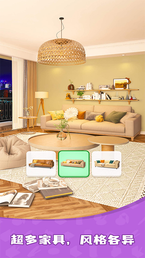 3、完成订单后,客户会给予你一定的评价,评价越高,获得的奖励更丰厚~装扮新家的物资全靠它了,北欧风还是中式田园,各种精美的家具在等待你的青睐,准备足够的金币,才能拥有更豪华的房间哦~不断进阶,公寓还能变成大别野。
