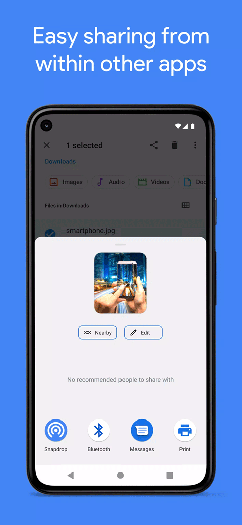 snapdrop官方正版是一款专业免费的点对点文件传输工具,通过蓝牙或者局域网就能完成设备的连接,帮助你极速传输各种文件,视频、文档等等全都支持,数据传输快速稳定,并且还无需隐私问题,且速度非常快。snapdrop传输文件app能支持Windows、Mac、Android、iOS设备之间进行文件互传,可以根据对方的内网地址来连接,点击头像就可以进行文件传输,十分的方便,有需要的用户快来下载吧。