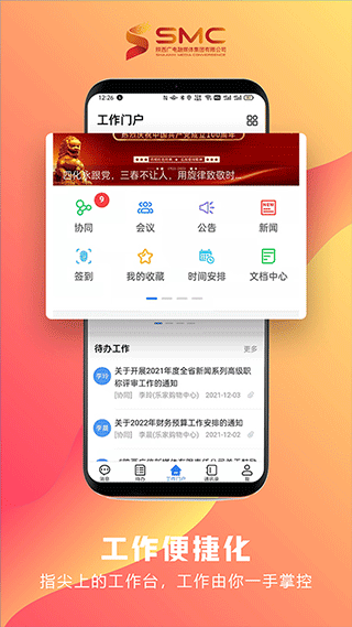 智慧融媒app是由陕西广电融媒体集团打造的一款党建学习软件,该软件可以实现为企业提供统一的移动入口,实现了信息化系统,面向党建工作,可在互联网上随时随地为党的各级党组织和广大党员提供基层党建工作管理、监督、学习和交流,其中更是覆盖了协同、公告、会议、新闻、时间安排、查询统计、讨论等日常工作常用服务,工作由你一手掌握,让线上办公更加轻松便捷,有需要的用户快来下载试试吧。