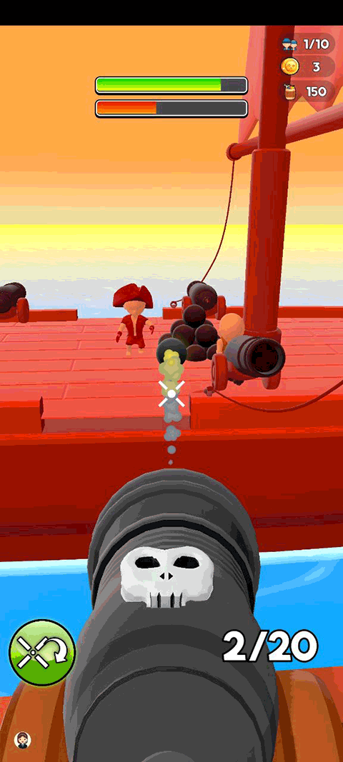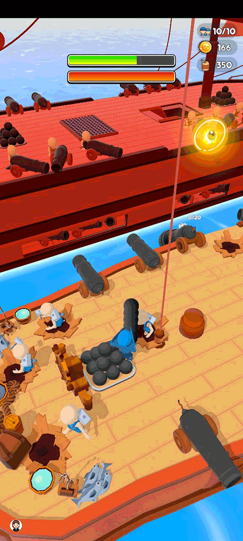 船上有2种不同的大炮,一种需要自己瞄准,但伤害更高,另一种直接点击就可以了,大家可以根据自己的玩法进行选择。