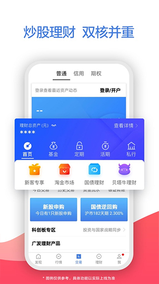 股票交易,新股申购,基金、理财产品购买,沪港通全支持。