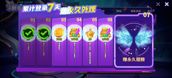 2、然后我们就可以来领取七日累计登入的福利,第七天还会有免费的翅膀。