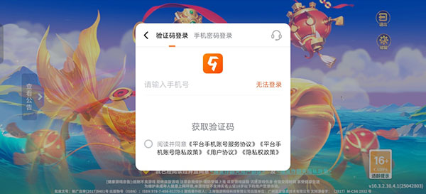 1、该版本是需要利用到手机号来进行登入的,首次登入默认会进行注册,当然游戏内也是可以注销的。