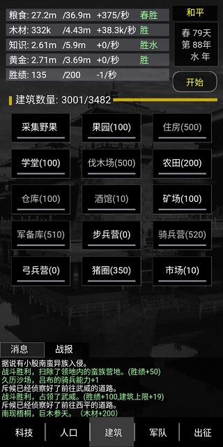 游戏中需要注意资源管理,尤其是木头的重要性不言而喻,因为木材是建筑和科技升级的核心。玩家需要合理分配人口,优先发展骑兵营,并在关键时刻坚决不妥协让地,避免被击败。此外,利用年份加成也是提升胜率的重要策略。