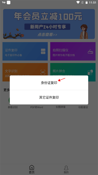 2、页面上弹出了一个小窗口,有两个选项,点击“身份证复印”。