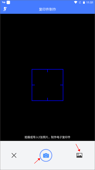 3、将身份证放置到摄像头前进行拍摄,或将手机的身份证照片导入到里面,一键变成电子复印件。