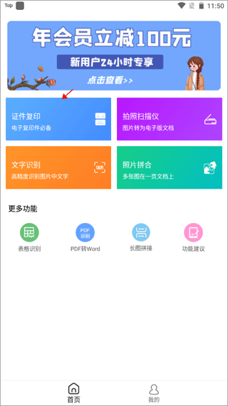 1、打开并进入软件首页,点击上方的“证件复印”功能按钮。