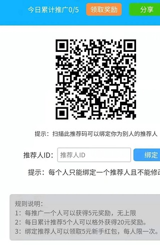 针对所有实名注册用户,只要绑定别人的ID号系统自动立即奖励5元;别人绑定您的ID号也可以奖励5元;