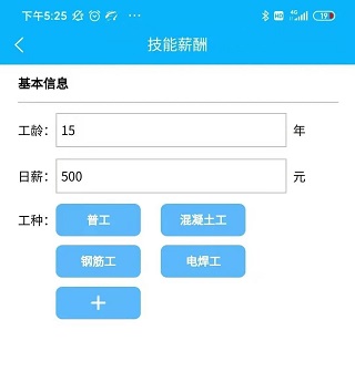 第二步:下载后绑定手机选择自己所需的角色及工种,如果没有就选择其它类;定好自己的日结出工价(日薪)。
