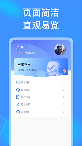 1、下载安装好吉星充电官方版,进入软件可以清楚的看到电量信息并且还可以听听纯音乐。