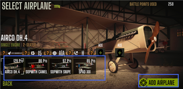 4、随后点击“+”图标,挑选自己喜欢的战机机型,选定后点击【ADD AIRPLANE】确认添加。