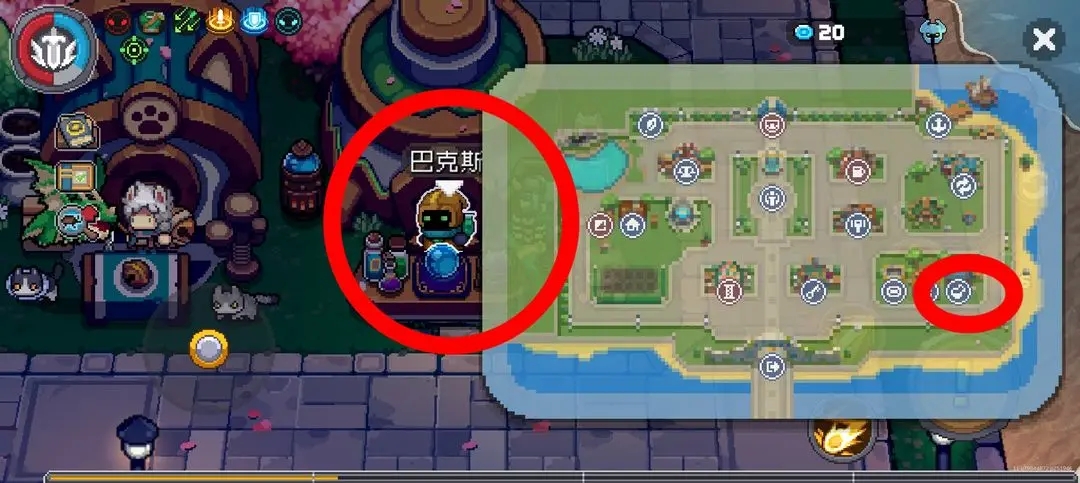 在宁静森林营地(商店关卡)随机偶遇巴克斯。