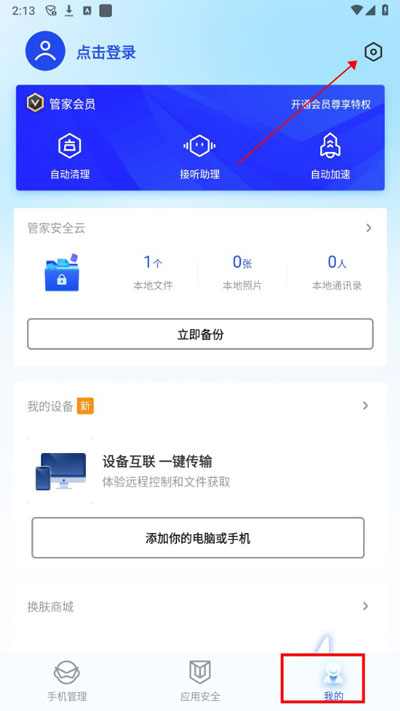 可以在软件主界面点击右下角我的,然后重新登录账号,如果保险箱的照片还没有恢复的话,可以点击隐私保险箱右上角的设置按钮,查看当前绑定的账号是否是你保存照片时绑定的账号,如果不是的话可以尝试切换绑定账号