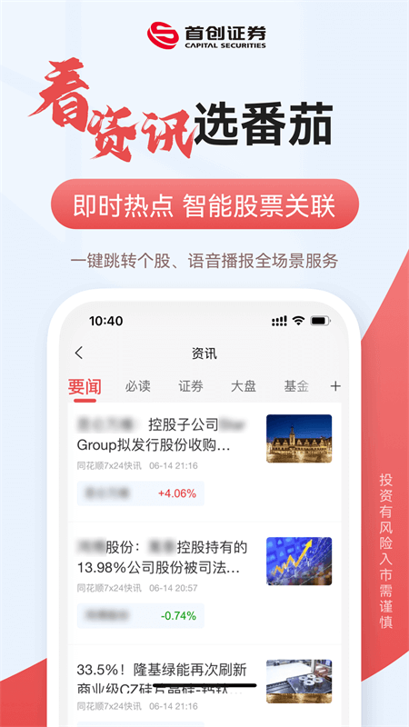 首创证券app(官方名:首创番茄财富)是一站式的财富管理平台,可为用户提供行情、交易、资讯等核心交易功能,更配备风向标、龙虎榜、投资图谱等免费的智能组件服务。