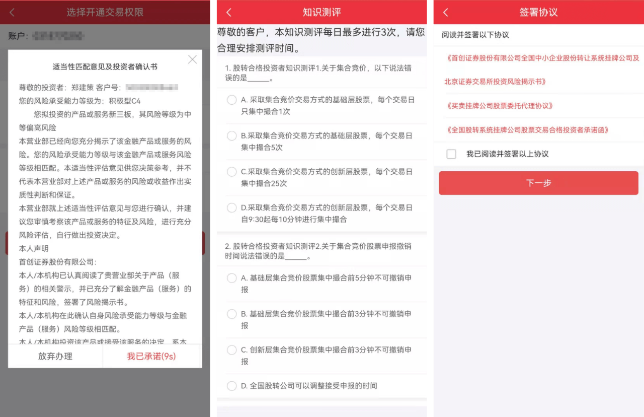 操作方式:首创番茄财富APP——我的——业务办理——新三板权限开通。