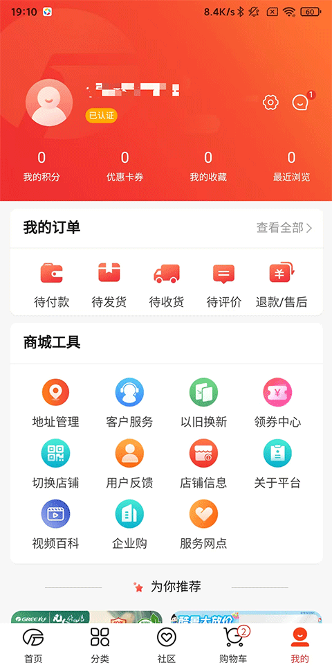 5、我的:查看我的订单详情、收藏、优惠券,还有商城工具等。
