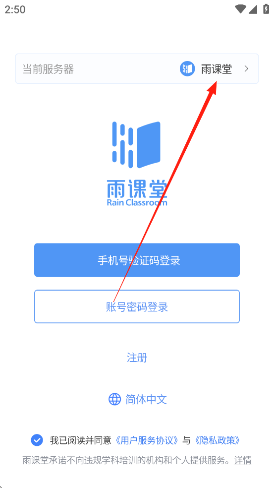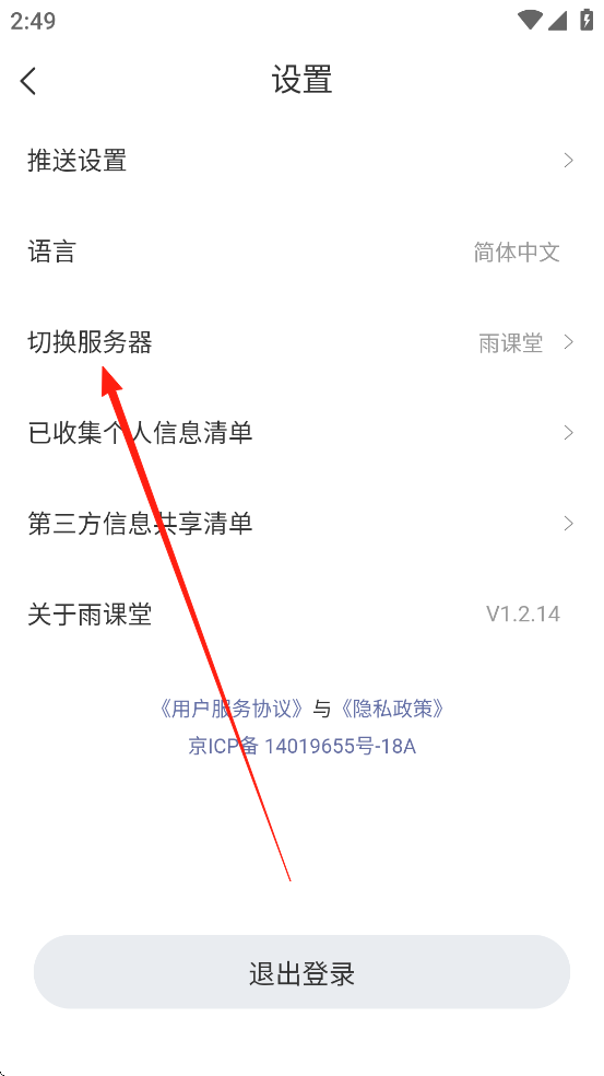 3、然后选择切换服务器