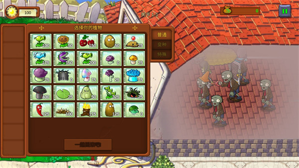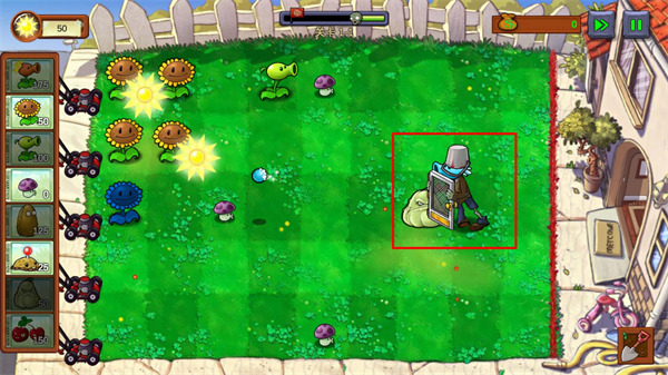 1、和僵尸大军展开精彩的对决,排兵布阵,发挥出强大的力量将其消灭。