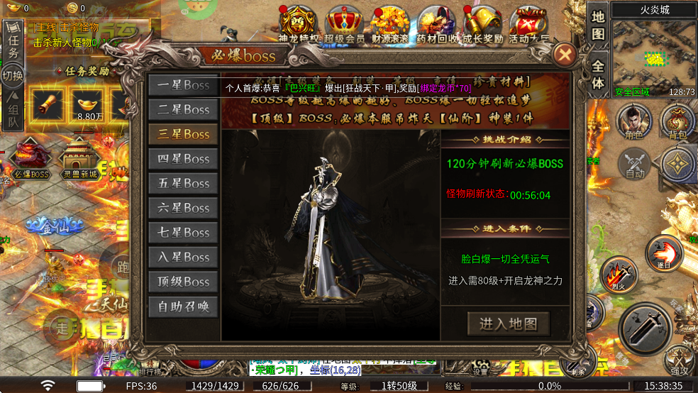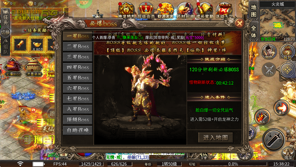 文章详细列出了游戏中的各个BOSS等级及进入条件,从一星到顶级BOSS需要玩家不断提升等级并开启龙神之力。此外,游戏还提供了许多特色功能:上线即送多种福利戒指和技能书、内置3折充值系统、免费特权、魂环系统等,极大提升了游戏的可玩性和收益空间。