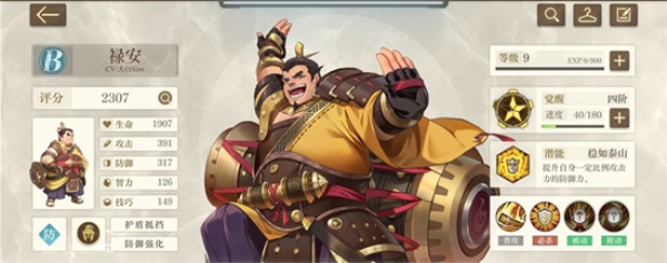 虽然禄安傻头傻脑是个b级角色,但是一来容易获取碎片迅速突破星级,二来主动技能推三路抗伤害效果还是很好的,三来就是四技能半血以下提升30减伤,持续十秒(没冷却,同时不限制触发次数,还是不错的)
