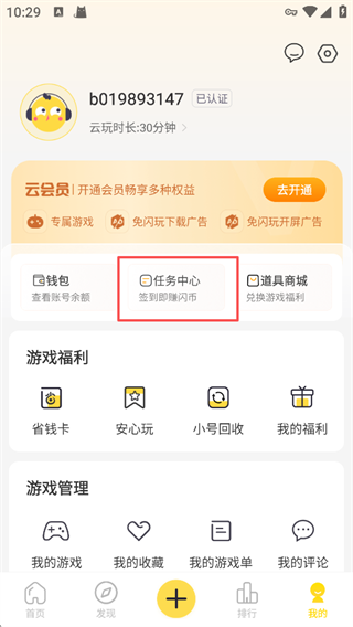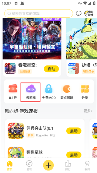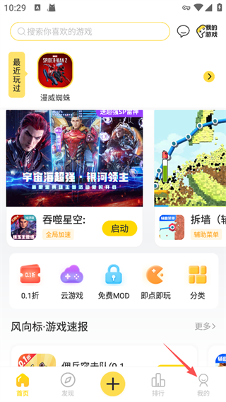 1、打开闪玩App,在首页点击云游戏